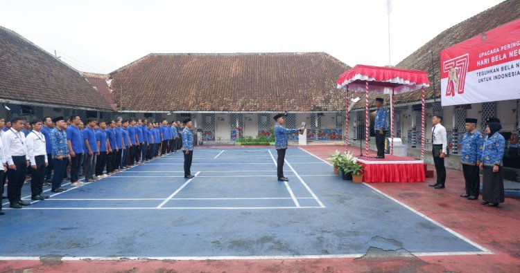 Temanggung - Dalam rangka menanamkan nilai-nilai nasionalisme dan semangat bela negara, Rumah Tahanan Negara (Rutan) Kelas IIB Temanggung melibatkan Warga Binaan Pemasyarakatan (WBP) untuk mengikuti Upacara Peringatan Hari Bela Negara ke-77 Jumat (19/12/2025).